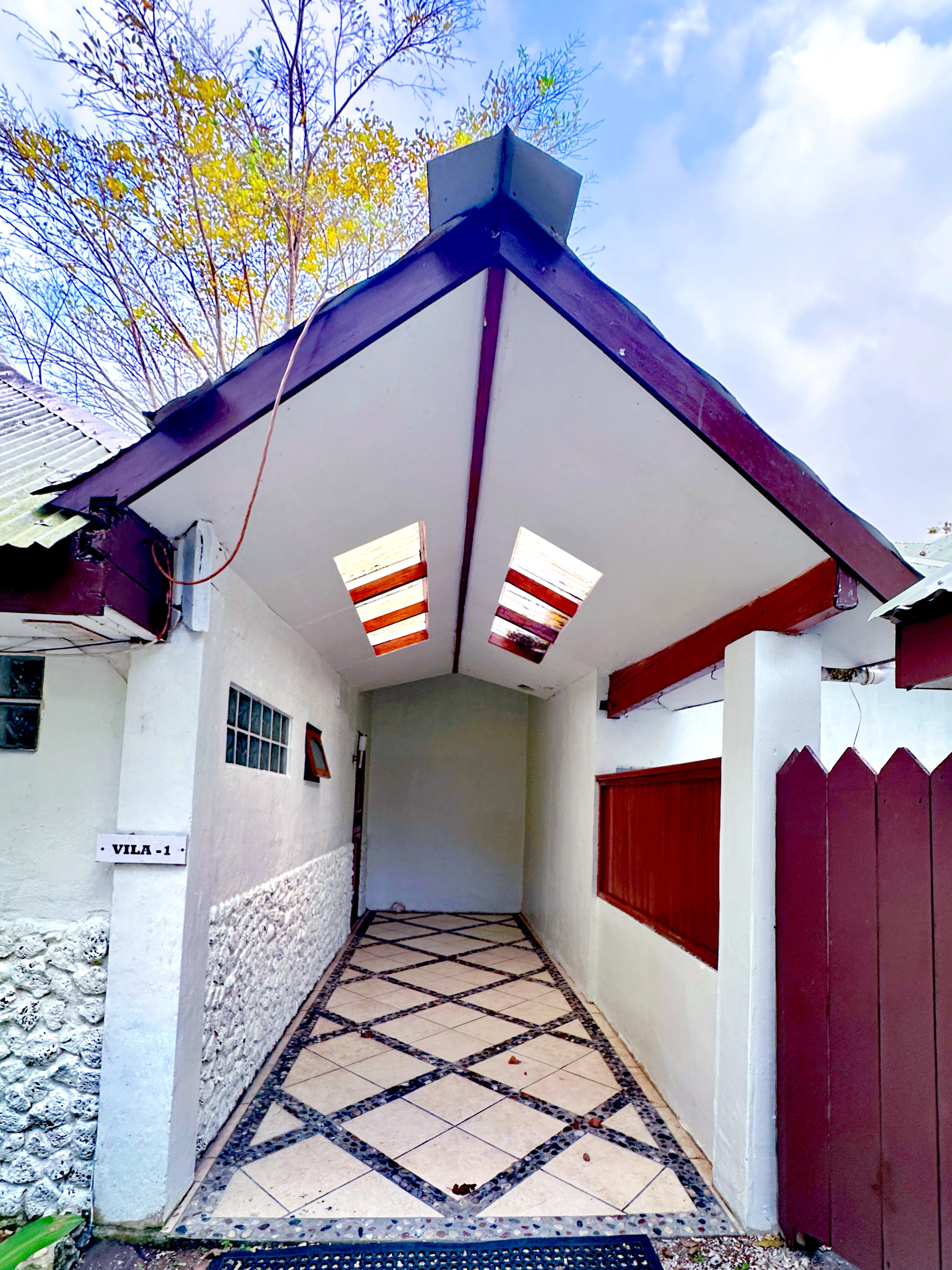 One Villa features a large deck built over the beach with superior ocean views and a uniquely carved tree in the center of the Villa.